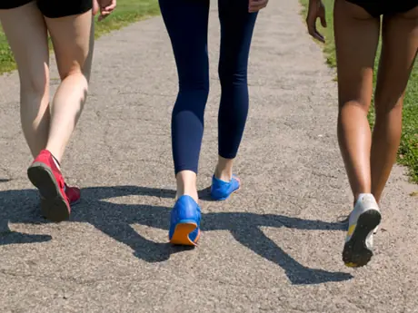 Lie on the floor flat on your back with legs extended and arms by your side, palms down. Keep your toes pointed to the ceiling. Slowly raise your head off the floor and tuck your chin down. Your shoulders should be slightly elevated. Then, raise both legs straight up as high as they'll go so you're bent at the hips. Hold this for 10 seconds, release and repeat several times.As you practice these exercises and begin engaging your core during your walks, you'll most likely experience soreness in your abdominals the next day. This is a good sign. By relaxing your legs, you decrease the build-up of lactic acid in those muscles, which means little to no recovery time, and you can start off every walk with fresh legs, relying on strong core muscles instead.